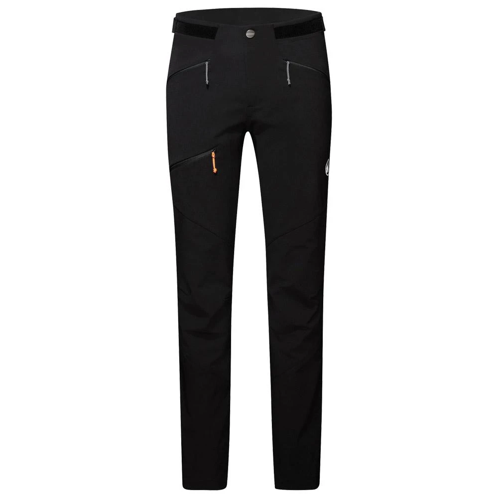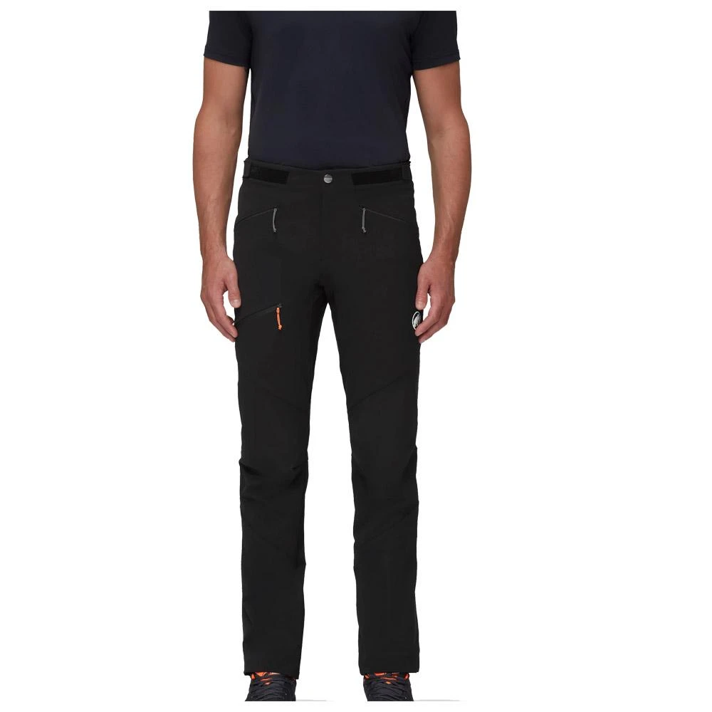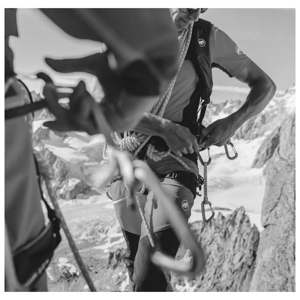 Die Taiss ist eine vielseitige Bergsteigerhose von Mammut und ausgezeichnet fürs Kraxeln und Eisklettern geeignet, wo sie sich pudelwohl fühlt. Sie ist gut gegen Abrieb und Abnutzung geschützt, windschnittig und atmungsaktiv. Zudem setzt sie auf eine wasserabweisende Softshell-Konstruktion. Der Stretchstoff und der asymmetrische Schnitt der Hosenbeine helfen dabei, dass die Hose sich an die Bergsteigerstiefel anpasst. Die Konstruktion ist robust und die Taschen sind so zugeschnitten, dass ihr mit der Hose einen Klettergurt tragen könnt, ohne dass dieser den Zugriff auf die Taschen versperrt. Für eine bessere Passform der unteren Hosenbeine hat Mammut ein Band eingesetzt, das verhindern soll, dass ihr euch an der Felswand verhakt. Die Taiss ist damit DIE Hose für alles rund ums Klettern, Alpinismus und Bergsteigen.