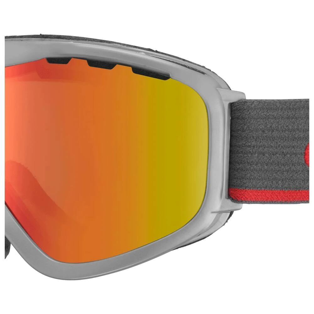 Die photochrome Scheibe Vario Perfo Amber Flash Red passt sich automatisch an die Lichtverhältnisse in der Umgebung an und sorgt so stets für eine bestmögliche Sicht. Sie kann dabei in wenigen Sekunden zwischen den Kategorien 1 und 3 wechseln und sich so an alle Witterungsbedingungen anpassen. Die Bernsteintönung sorgt für eine klare Optik bei jedem Wetter. Mit dieser Skibrille bekommt ihr also eine Scheibe, die sich für gutes wie auch schlechtes Wetter eignet.