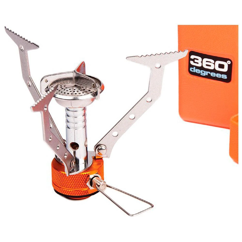 Der 360 Degrees Furno Stove ist ein sehr leichter und kompakter Koch er aus rostfreiem Stahl und einer Aluminiumlegierung, der einen Liter Wasser in 3 Minuten und 20 Sekunden zum Kochen bringen kann. Ein stabilisierender Fuß mit drei Zinken wird mitgeliefert und die Flamme ist einstellbar, um die Leistung anzupassen.
