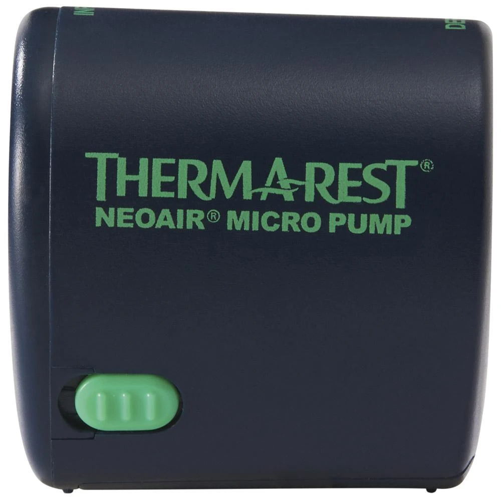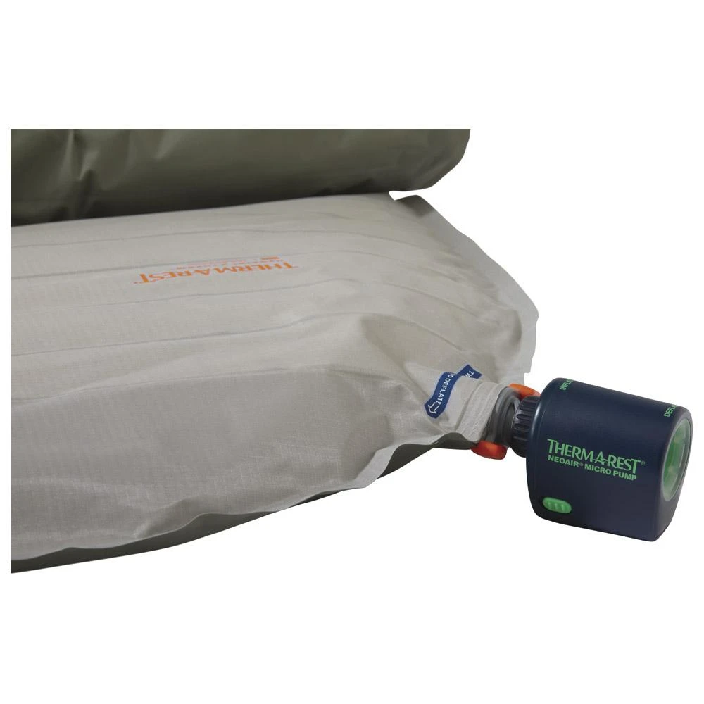Die NeoAir Micro ist eine elektronische Pumpe, die sehr leicht (65 g) und platzsparend ist. Sie benötigt zwei AAA-Batterien (nicht im Lieferumfang enthalten) und ermöglicht ein schnelles Aufblasen von Matratzen mit WingLock- oder TwinLock-Ventilen. Es ist auch möglich, die Luft aus einer NeoAir-Matratze mit WingLock-Ventil abzulassen, um beim Abbau des Lagers Zeit zu sparen