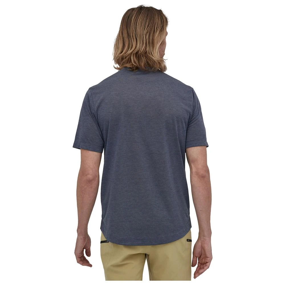 Das Cap Cool Trail Bike Henley von Patagonia besteht aus gewebtem Polyester-Jersey (100% recycelt) und bietet Komfort und Atmungsaktivität während Ihrer Mountainbike-Touren.