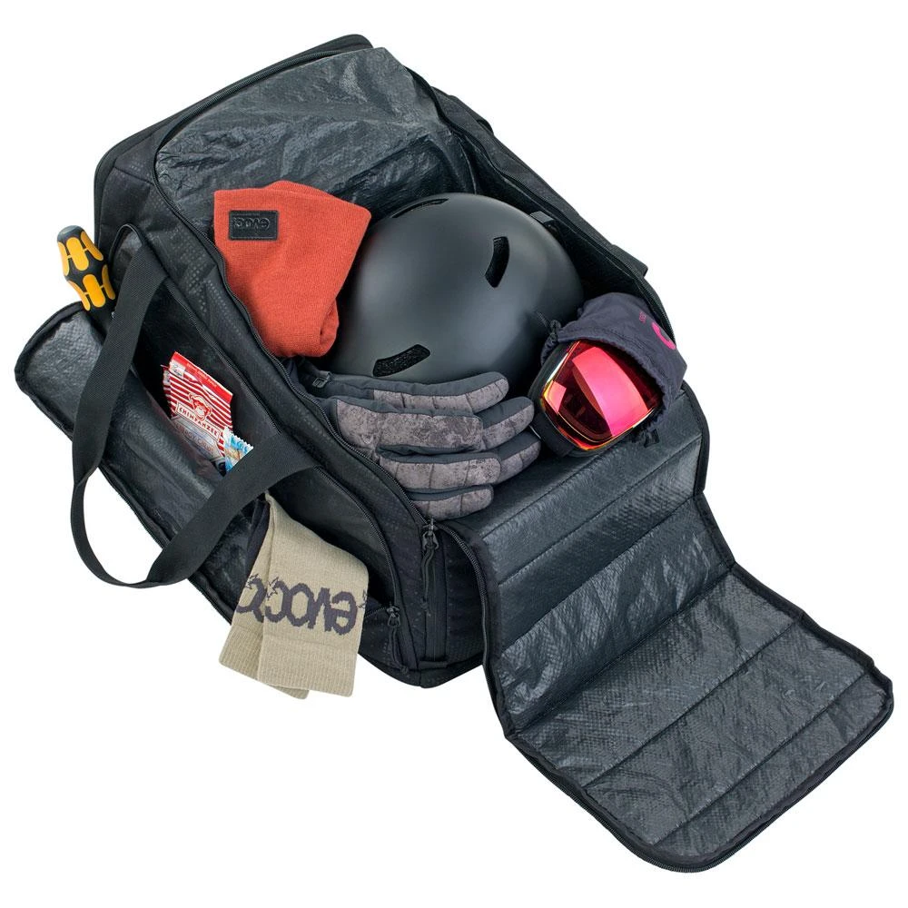 Die Gear Bag 35L ist eine robuste und vielseitige Reisetasche von Evoc. Mit einem Fassungsvermögen von 35 Litern und einem gepolsterten und unterteilbaren Hauptfach können Sie Ihre gesamte Snowboard-Ausrüstung mitnehmen und Ihre Brille und Schuhe separat aufbewahren. Dieses Modell ist als Handgepäck für Flugzeuge geeignet.