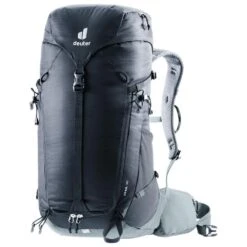 Der Deuter Trail 30 besteht aus einer Kombination von Polyestermaterialien, die für ihre Reiß- und Abriebfestigkeit bekannt sind. An der Außenseite können Wanderstöcke oder ein Eispickel befestigt werden. Das Fach auf der Vorderseite erleichtert den Zugriff auf den Inhalt, was Kletterer zu schätzen wissen, da sie so schnell an ihre Ausrüstung kommen. Wenn der Regen stärker wird, kann die gesamte Tasche mit einer Regenhülle abgedeckt werden, um die Sachen vor Feuchtigkeit zu schützen. Auch das Innere des Rucksacks ist von oben leicht zugänglich. Dort kann ein Wasserbeutel untergebracht werden, damit Sie immer genug zu trinken haben, ohne anhalten zu müssen.