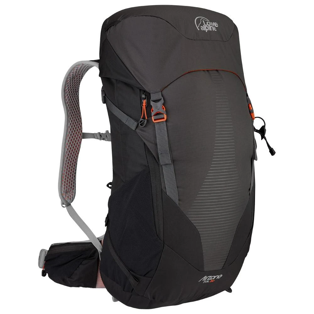 Er ist mit einem AirZone-Rückenpanel ausgestattet, das nicht nur sehr angenehm zu tragen ist, sondern auch die Luftzirkulation fördert, wodurch unangenehmes Schwitzen vermieden wird. Zur besseren Gewichtsverteilung verfügt er über einen Bauchgurt mit integrierten Taschen, aber auch über gepolsterte Schultergurte, Rückholgurte, seitliche Kompressionsriemen und einen Brustgurt mit Pfeife.