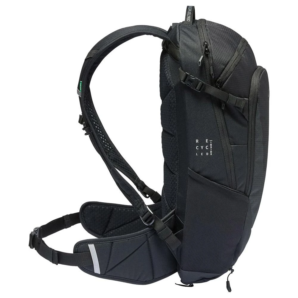 Der Rucksack Vaude Moab 15 ll eignet sich für eure Ausflüge mit dem Mountainbike und bietet Platz für Werkzeug, Wasser, Nahrung und Wechselkleidung. Er ist atmungsaktiv und ergonomisch, leicht und komfortabel. Die Schulterträger, der gepolsterte Bauchgurt und der Brustgurt sorgen für eine gute Gewichtsverteilung. Ein Helmträger und Seitentaschen gehören ebenso zur Ausstattung wie ein großes Hauptfach und ein spezielles Fach für eure Tools. Ein integrierter Regenschutz schützt eure Sachen bei schlechtem Wetter. Vaude achtet bei der Herstellung des Rucksacks Moab 15 ll auf ökologische Nachhaltigkeit und verwendet recycelte Materialien.