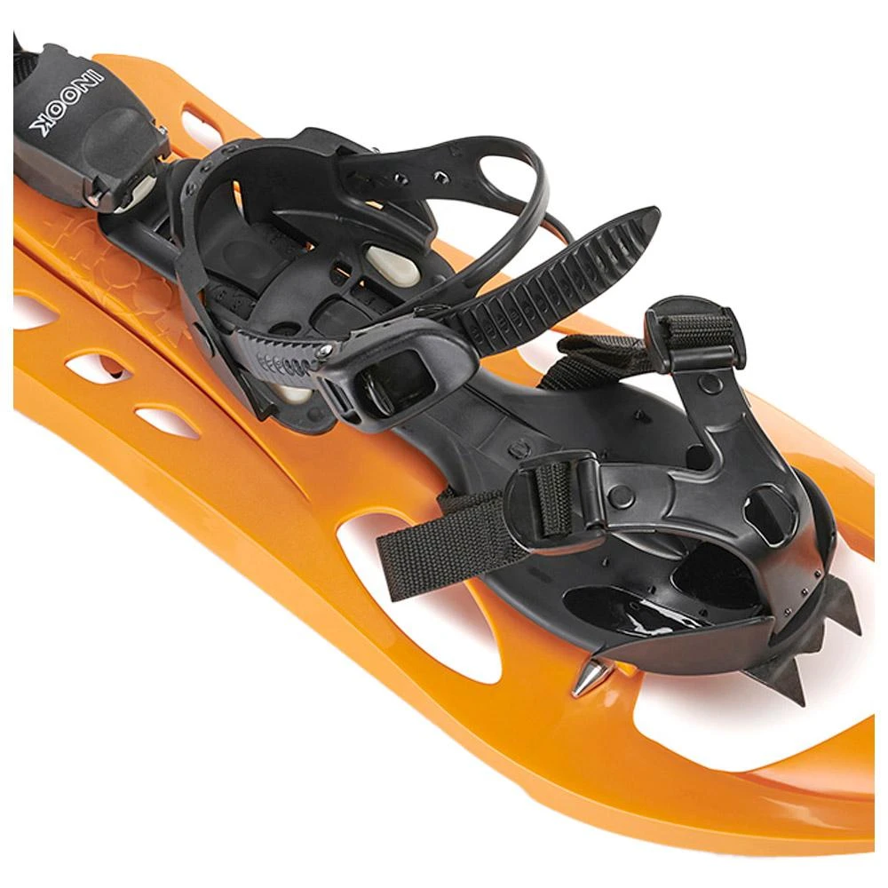 Die Inook AXL Damen-Schneeschuhe sind mit der Auto Gliding System Technologie ausgestattet und haben einen Mechanismus, der mit einem einfachen Druck auf den Stock in drei Positionen verstellt werden kann, damit Sie problemlos gehen, Hindernisse überwinden oder einen Hang hinaufgehen können. Dank des Wing Concept und des Aerotec-Designs bleibt der Pulverschnee nicht unter dem Sieb kleben, und der Schneeschuh zerteilt den Schnee, ohne ihn zu schieben, und ermöglicht so ein müheloses Laufen. Die Stoßdämpfer reduzieren die Geräusche, die beim Gehen entstehen, ermöglichen ein besseres Eintauchen in die Geräusche der Natur und sorgen so für ein viel reichhaltigeres Erlebnis. Das Modell ist für Schuhgrößen von 34 bis 42 und ein Körpergewicht von 40 bis 80 kg ausgelegt. Im Lieferumfang ist eine Tasche enthalten, die den Schuh beim Transport schützt.