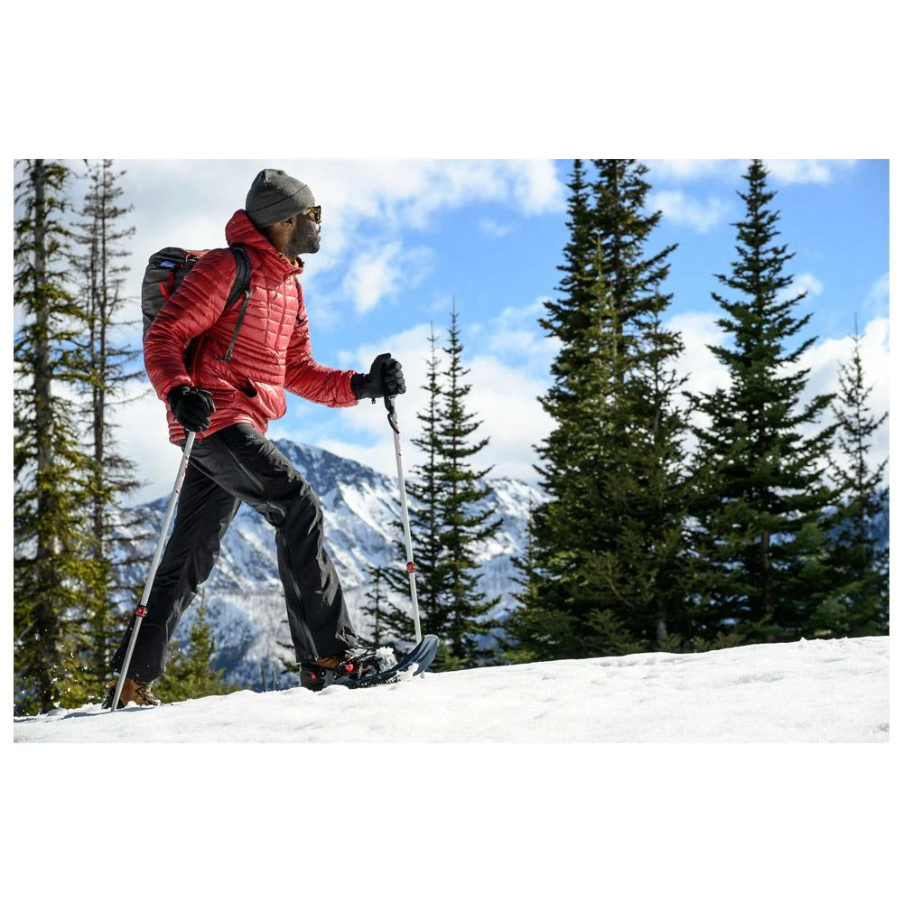 Die Schneeschuhe Msr Gear Evo Trail sind bestens ausgestattet und überaus praktisch. Es handelt sich um ein leichtes und robustes Modell, das eine gute Wanderleistung ermöglicht. Kompatibel sind diese Schneeschuhe mit so gut wie allen Schuhen und Stiefeln und sorgen für einen sicheren und effizienten Halt. Die 6 Stahlzacken mit seitlichen Klingen und die Frontalzacken stellen unter allen Umständen eine tadellose Griffigkeit sicher, damit ihr sicher auftreten könnt. Der Steigkeil lässt sich mithilfe eines Wanderstocks ganz einfach betätigen und ermöglicht ein müheloses Laufen am Anstieg. Die Riemen lassen sich allesamt problemlos auch mit Handschuhen bedienen, damit ihr beim An- und Ausziehen keine kalten Hände bekommt.