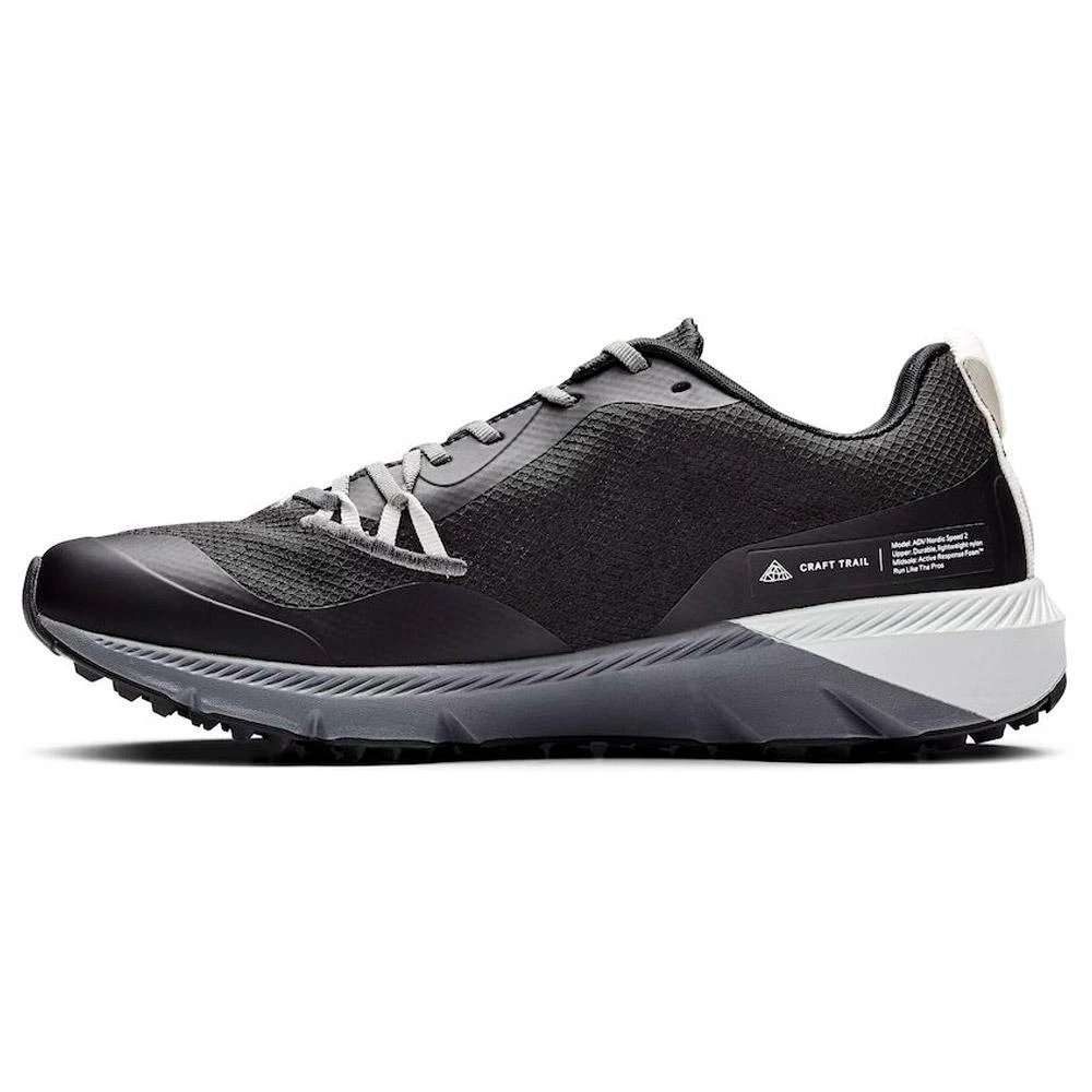 Der Craft ADV Nordic Trail ist ein Laufschuh für Trail Running, der einen guten Schutz bietet und sich strapazierfähig zeigt. Mit ihm kommt ihr beim Traillauf und beim Nordic Walking durch eine Vielzahl an Geländen. Mit seiner leichten, flexiblen Struktur garantiert er eine exzellente Bewegungsfreiheit und die Zwischensohle aus CMEVA-Schaum sorgt für eine sanfte Dämpfung. Die Außensohle ist so gestaltet, dass sie sich auf verschiedenen Geläufen griffig zeigt.