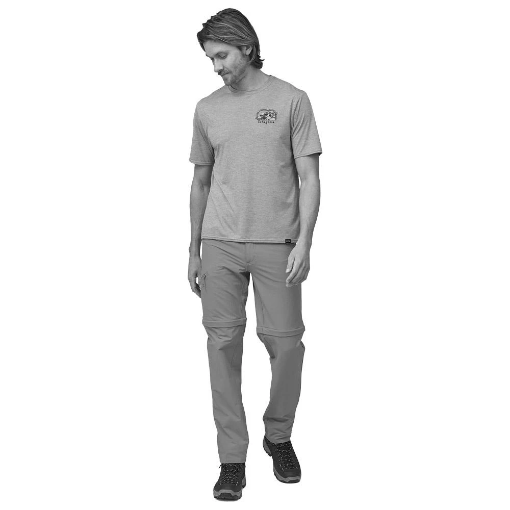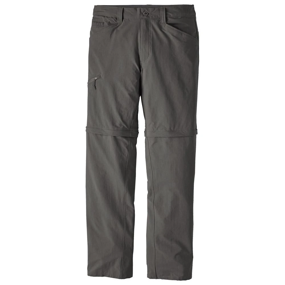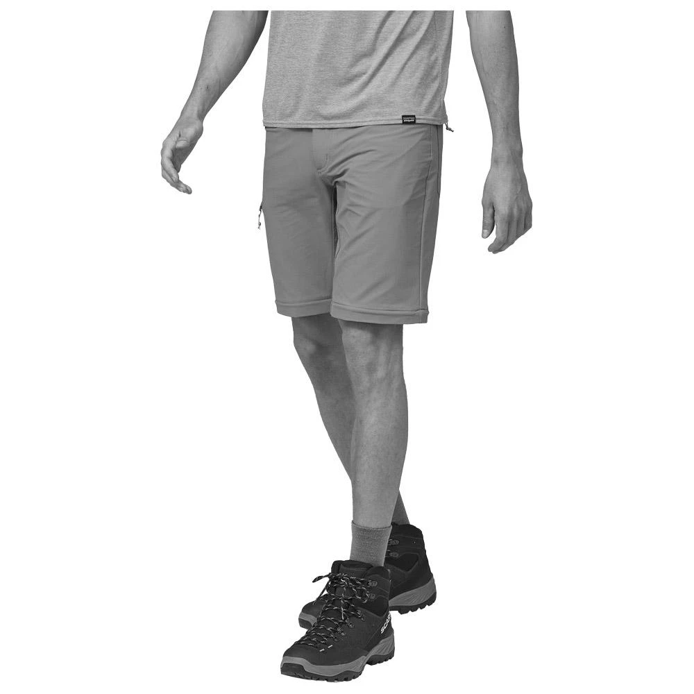 Die Wanderhose Patagonia Quandary lässt sich überaus vielseitig an die jeweiligen Witterungsbedingungen oder an die Tageszeit anpassen. Die Beine der Hose lassen sich abnehmen, sodass ihr selbst entscheiden könnt, ob ihr die unteren Hosenbeine tragt oder nicht. Ihr bekommt mit der Quandary somit eine lange Wanderhose und eine Wandershort in einem! Patagonia verwendet Nylon und Elastan, wobei der Großteil der Materialien recycelt wurde. Die Hose trägt sich leicht, ist gut belüftet und bietet eine sehr angenehme Bewegungsfreiheit. Die Hosenbeine lassen sich über einen Reißverschluss sehr einfach abnehmen oder wieder anlegen. Die Hose verfügt über fünf Taschen: zwei vorn, zwei hinten und eine Cargotasche mit Reißverschluss auf dem rechten Oberschenkel. Diese Hose ist eines der Topmodelle von Patagonia und das vielseitigste Modell der Serie.