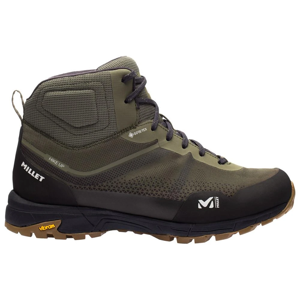 Die Wanderschuhe Millet Hike Up Mid Gtx besitzen einen mittelhohen Schaft, der Halt und Flexibilität miteinander vereint. Dieser Schuh ist leicht und lässt euch auch auf langen Wandertouren in eurem eigenen Rhythmus laufen. Das Material Engineered Mesh ist flexibel, atmungsaktiv und abriebfest. Ein Gummi-Steinschutz komplettiert den Schutz. Für euren Komfort sorgen eine Polsterung rund um die Knöchel und die Gore-Tex-Membran, die Wasserdichtigkeit garantiert und für eine gute Atmungsaktivität sorgt. Die Innensohle Top Comfort und die doppellagige Zwischensohle sorgen für ein Höchstmaß an Komfort. Die Gelenkfeder, die in letzterer verbaut ist, verhindert Verdrehungen. Die Außensohle Vibram Fell Running ist griffig, leicht und sorgt für eine gute Haftung auf dem Untergrund.