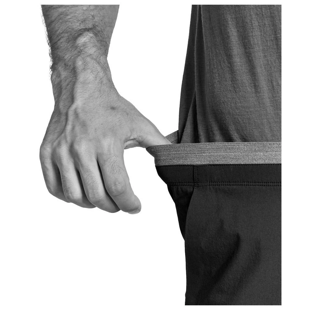 Die Herren Wandershort Ortovox Piz Selva ist die perfekte Wahl für eure Abenteuer im Freien. Mit ihrem elastischen Gürtel aus Merinowolle sitzt sie sicher und bequem. Die Stretch-Membran garantiert eine optimale Bewegungsfreiheit. Dank ihres abriebfesten Stoffes ist sie außergewöhnlich haltbar. Der Stoff ist außerdem atmungsaktiv und trocknet schnell, sodass ihr es immer schön trocken habt, selbst wenn die Sonne brennt und ihr ins Schwitzen kommt. Kleine Schauer können euch ebenfalls nichts anhaben, denn die kurze Wanderhose schützt auch vor Feuchtigkeit von außen. Mit ihrer ultraleichten Konstruktion könnt ihr euch in jedem Gelände gut bewegen. Die beiden Taschen vorn und eine Reißverschlusstasche an der Seite bieten Platz für ein paar persönliche Dinge und kleine Accessoires.