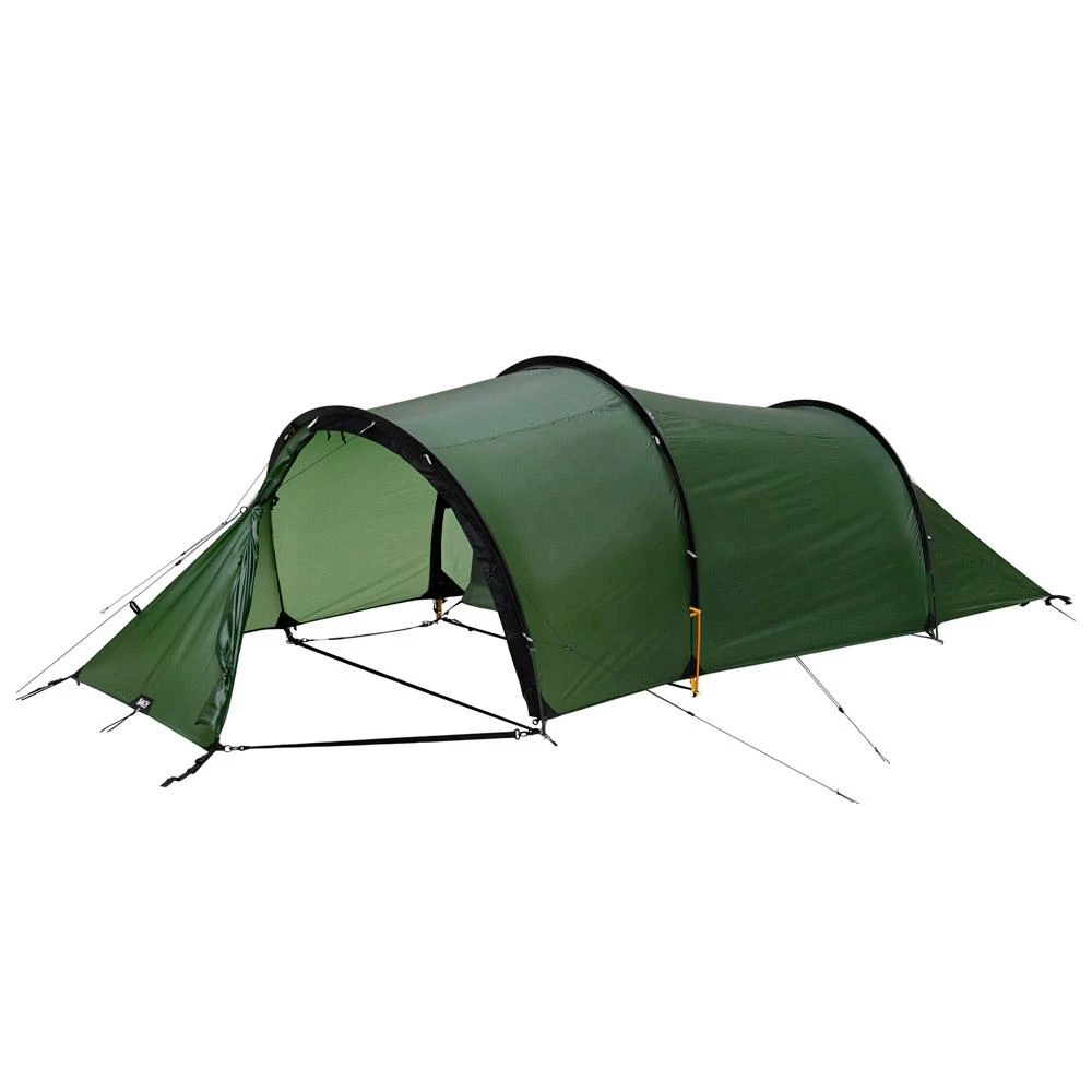 Das 4-Jahreszeiten-Zelt Apteryx 2 der Marke Bach Backpacks bietet genügend Platz für 2 Personen, damit ihr die Nacht gut geschützt verbringen könnt. Integriert ist ein geräumiges Vorzelt, das genügend Platz für Rucksäcke, Kocher, Campinggeschirr usw. bietet. Das Außenzelt besteht aus GorLyn-30-Stoff, einem silikonbeschichteten Material, das wasserabweisend und überaus beständig gegen Abrieb und Zerreißen ist. Die wasserabweisende Beschichtung des Außenzelts HeiQ Eco Dry ist nachhaltig und kommt ohne PFC aus. Die Heringe und das Gestänge folgen einem speziellen Farbcode, um den Aufbau zu erleichtern – sowohl tagsüber als auch nachts im Schein der Stirnlampe.