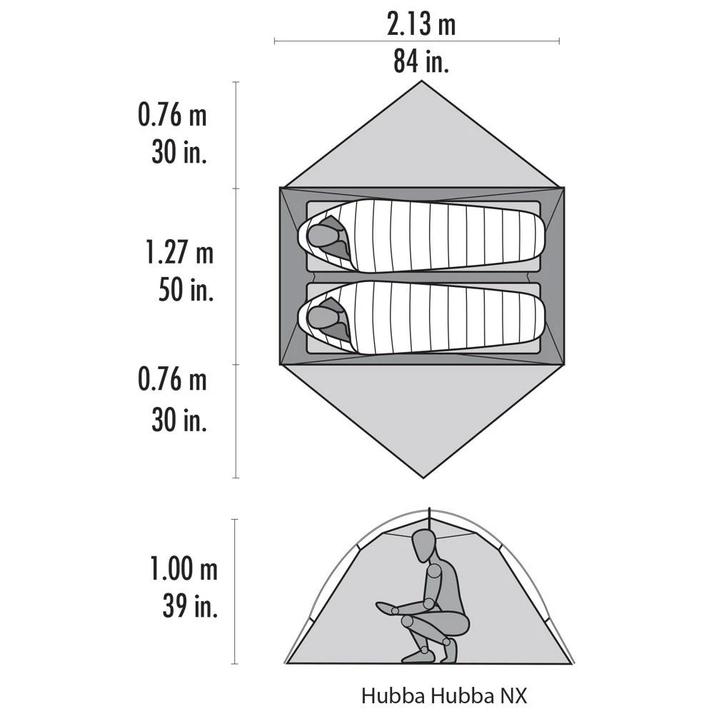 Das Zelt MSR Gear Hubba Hubba Nx ist ein kompaktes und leichtes Zelt für eine Nutzung in den drei warmen Jahreszeiten. Es ist ideal für 2 Personen und verfügt über eine Grundfläche von 2,7 m². Das Außenzelt lässt sich einstellen und die Apside einrollen und so zum Himmel hin öffnen. Dank der wasserabweisenden Durashield-Beschichtung seid ihr vor Feuchtigkeit geschützt und der Mesh-Stoff sorgt für eine effiziente Belüftung. Der große Eingang in D-Form erleichtert das Rein- und Rausklettern, während es das StayDry-System ermöglicht, die Türen offen zu halten, ohne dass Wassertropfen nach innen gelangen. Das Zelt ist so konzipiert, dass der Aufbau möglichst einfach und schnell gelingt. Die Schlingen für die Heringe lassen sich einstellen.