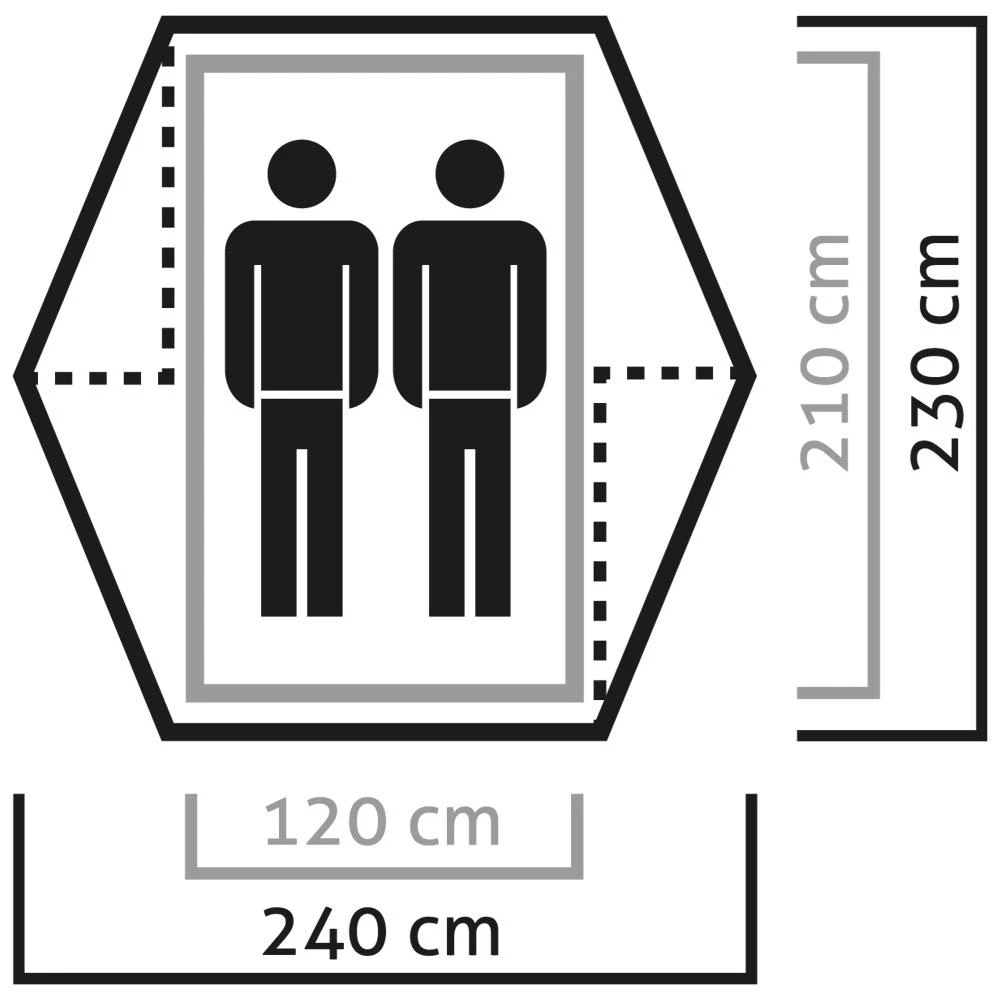 - Außenzelt: 68D Polyester Ripstop mit wasserdichter 3K-Polyurethanbeschichtung.